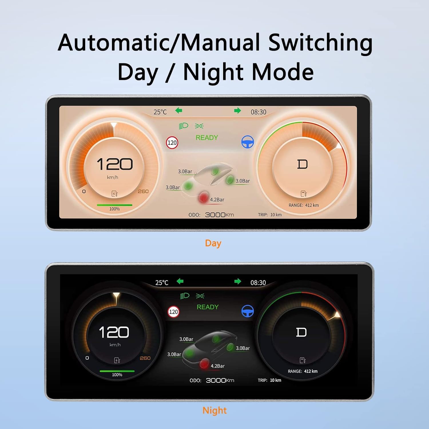 • Unique Design: Screen Size: 10.25 inch, IPS touch HD 1920*720.